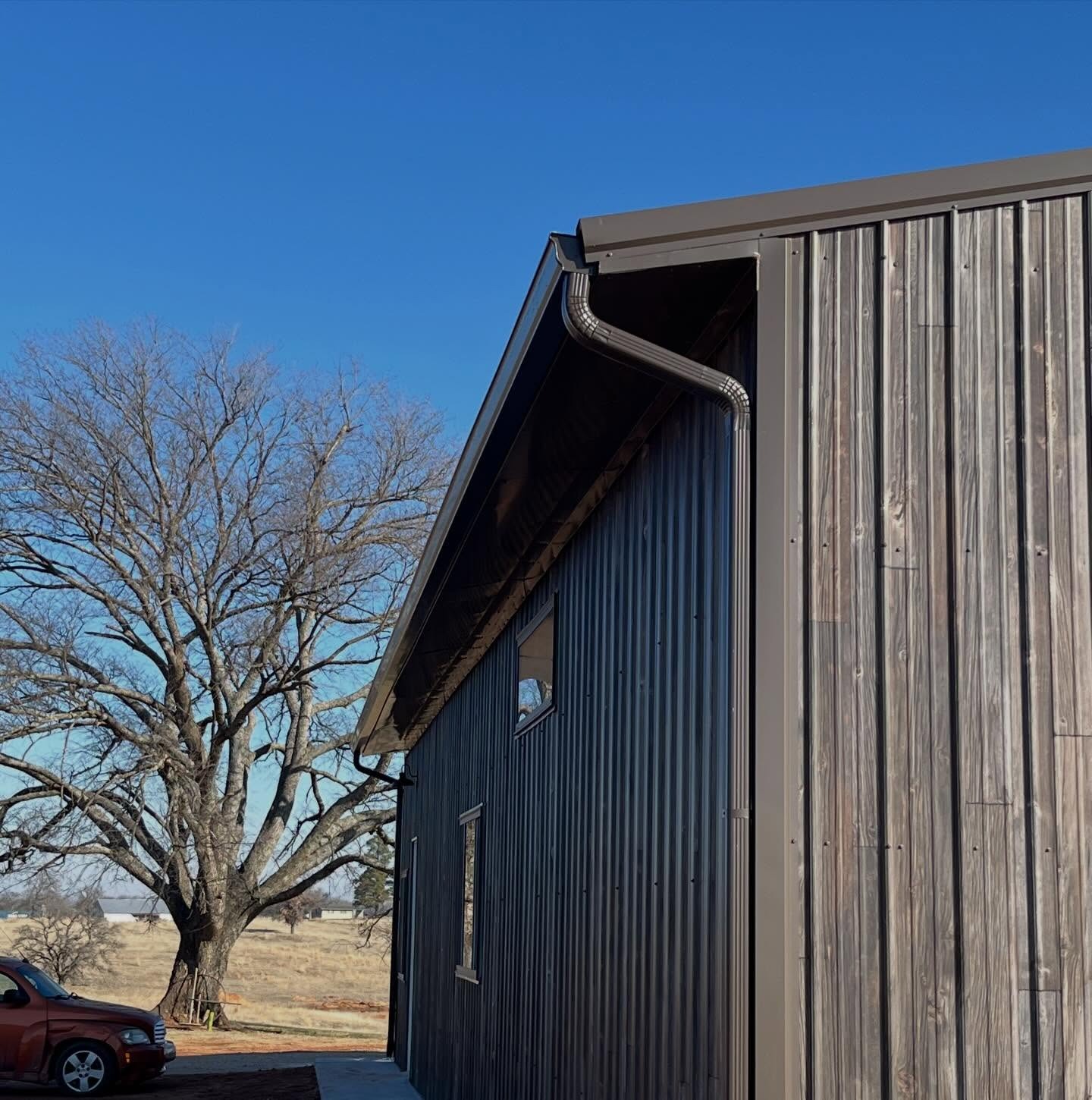 And honestly? Twenty years ago, that was a fair critique. Metal siding meant ribbed white panels on a machine shed. If you wanted warmth and character on a home, a barndominium, or a commercial storefront, you reached for cedar, pine, or cypress — and then you signed up for a lifetime of sealing, staining, and replacing boards the carpenter bees chewed through.
